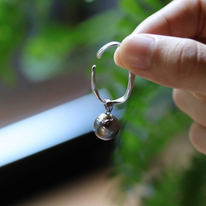 クラシックなペンダントトップ。クロチョウガイはナス似が多い。なすびと呼びたい形もあれば、グリーンカレーに入っている丸っこいナスみたいな形も。